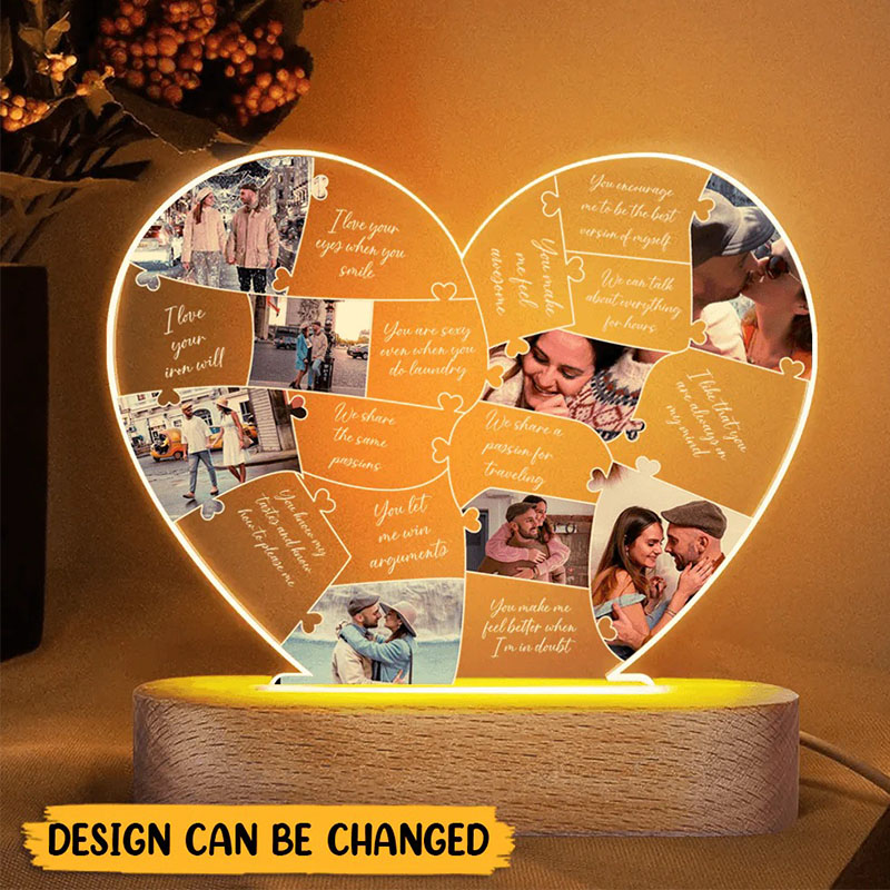 Luce LED personalizzata a forma di cuore con 12 motivi per amarti
