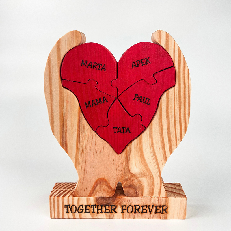 Puzzle personalizzato con nome a forma di cuore che tiene la mano