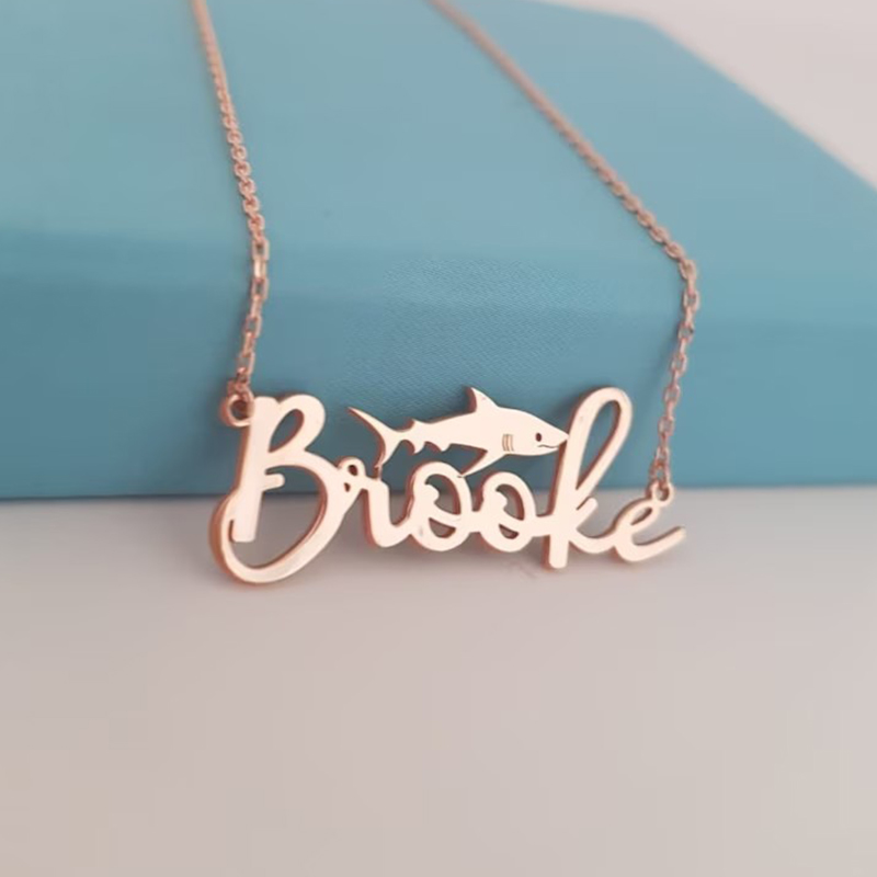 Collana di squalo, collana con nome personalizzato con squalo, ciondolo di squalo d'argento, regalo per amante degli squali, collana con nome di squalo, regalo di nuoto