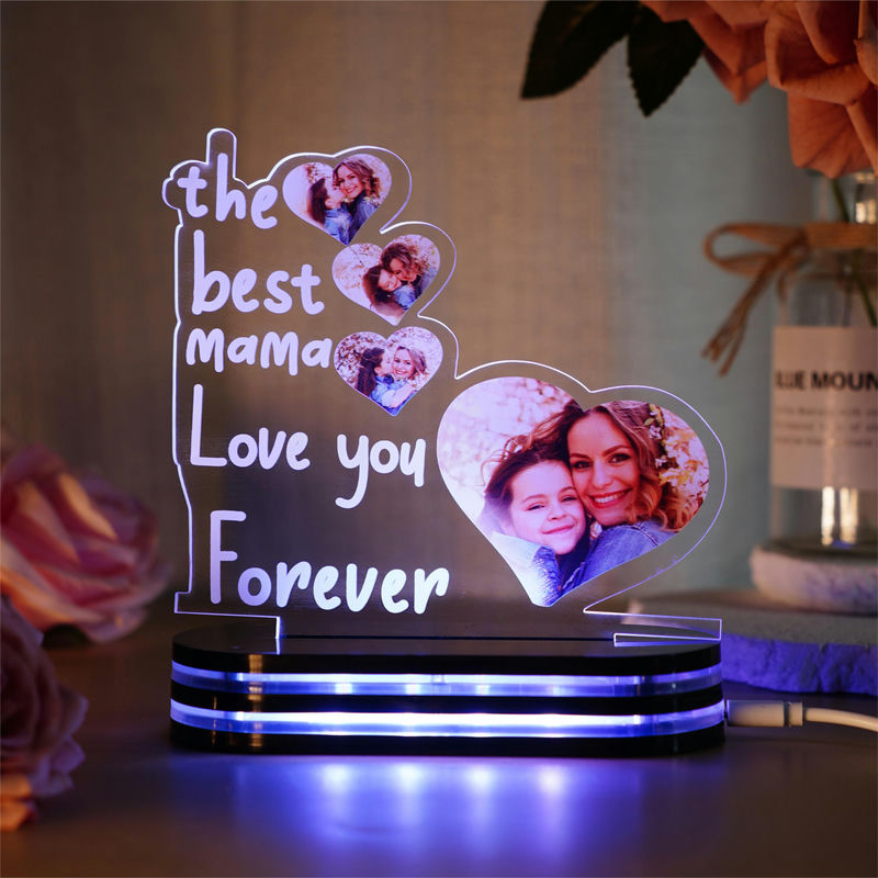 Luce notturna in acrilico personalizzata con la foto della migliore mamma del mondo