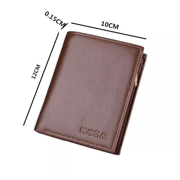 Men's Genuine Leather Trifold Vertical Wallet With zipper pocket